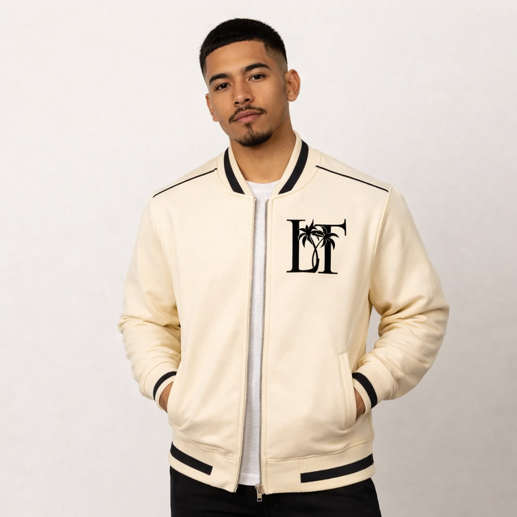 Cream Limbo Town Zip Bomber Jacket